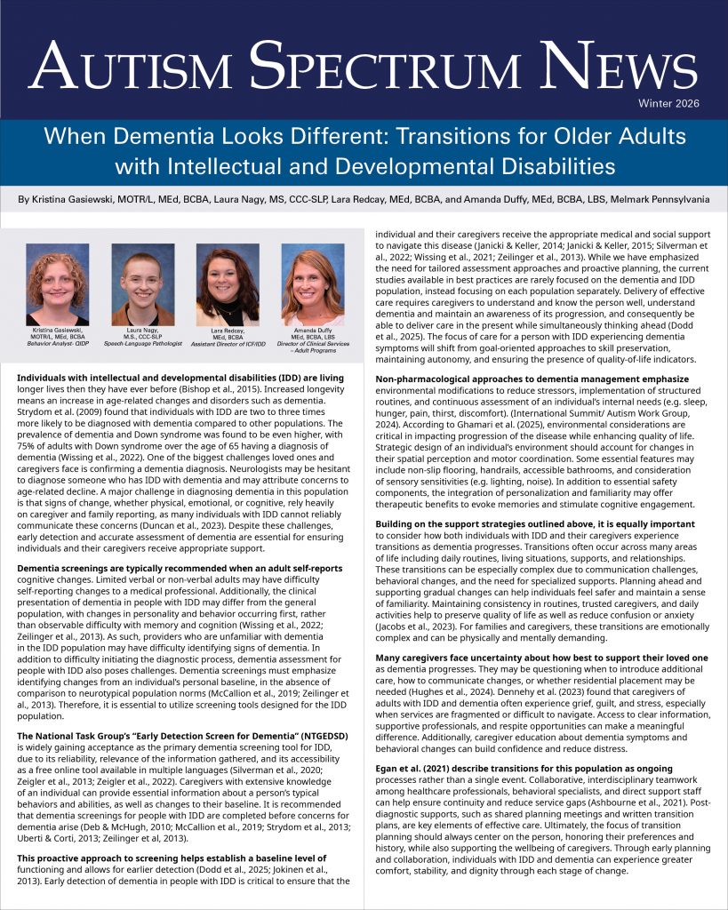 When Dementia Looks Different: Transitions for Older Adults with Intellectual and Developmental Disabilities